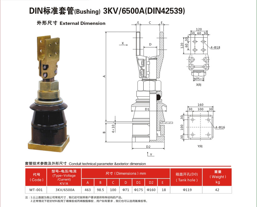 3KV/6500A(DIN42539)變壓器套管