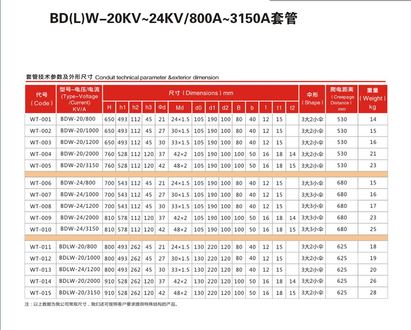 BD(L)W-20KV~24KV/800A~3150A變壓器套管