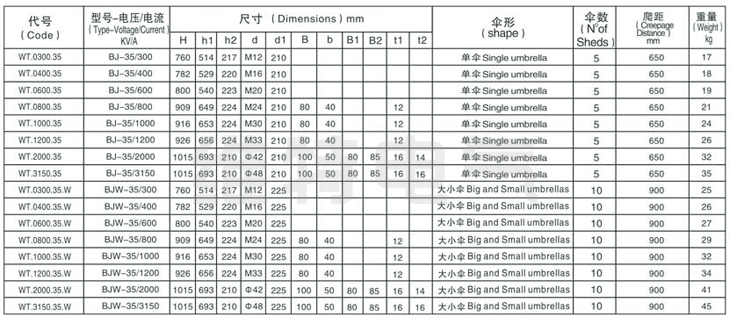 BJ-35KV/300A-3150A BJW-35KV/300A-3150A變壓器套管