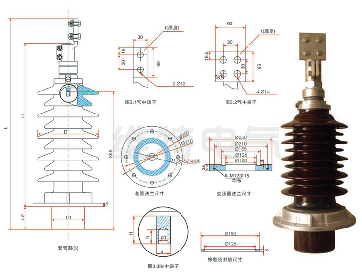 2.具有離抗震和耐破性、機械強度好,套管鋁合金法蘭采用航空技術(shù)生產(chǎn),瓷套與法蘭采用特殊工藝經(jīng)卡裝后粘接在一起,機械 強度高、耐腐蝕、外型美觀(guān),適合特殊環(huán)境。